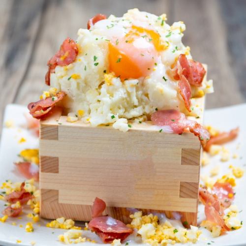 定番の逸品!ポテトサラダ●コクがあり、しっとりしていながら口どけの良い人気の一品。玉子の黄身の濃厚さを混ぜると食べるとさらに美味しさUP!