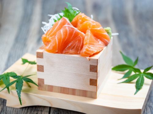 大人気!サーモン刺身●新鮮で脂がのったサーモンは、女性人気ナンバーワン!