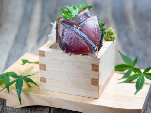 カツオのたたき●香ばしく燻された皮と味がぎゅっと締まり食べ始めたら止まらない逸品。
