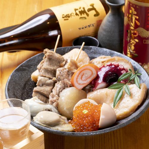 当店自慢のつゆは、旨味を合わせた秘伝のダシを、じっくり煮込みます。お出汁の中でしみしみに味付けされたおでんを日本酒や焼酎と一緒に楽しんでください♪