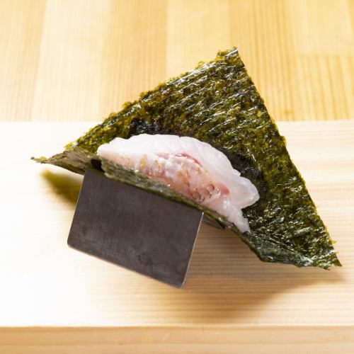のどくろ寿司ドック。白味魚の王様、上品な脂のりでとろける逸品。